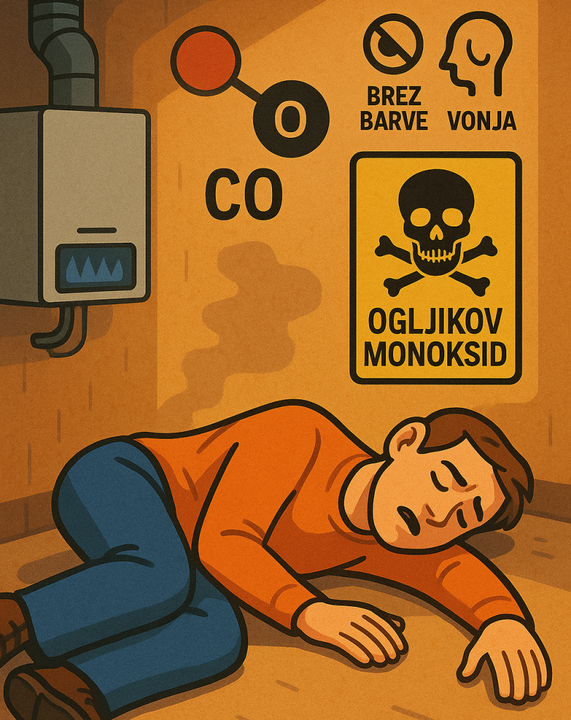 Ogljikov monoksid (CO) je tih in neviden morilec, ki vsako leto terja življenja zaradi zastrupitev. Gre za plin, ki nima barve, vonja niti okusa, zato ga človek s svojimi čutili sploh ne zazna. Nastane pri nepopolnem zgorevanju – torej kadar pri gorenju zmanjka kisika ali gorenje tli. Pogosti viri CO v gospodinjstvu so kurilne naprave na trda goriva (peči, kamini), plinski bojlerji in peči, izpušni plini avtomobilov, žari na oglje, tudi sveče in cigarete sproščajo nekaj CO. Ker je brez dražečih lastnosti, se lahko v prostoru kopiči, ljudje pa ne opazijo ničesar – dokler ni prepozno.