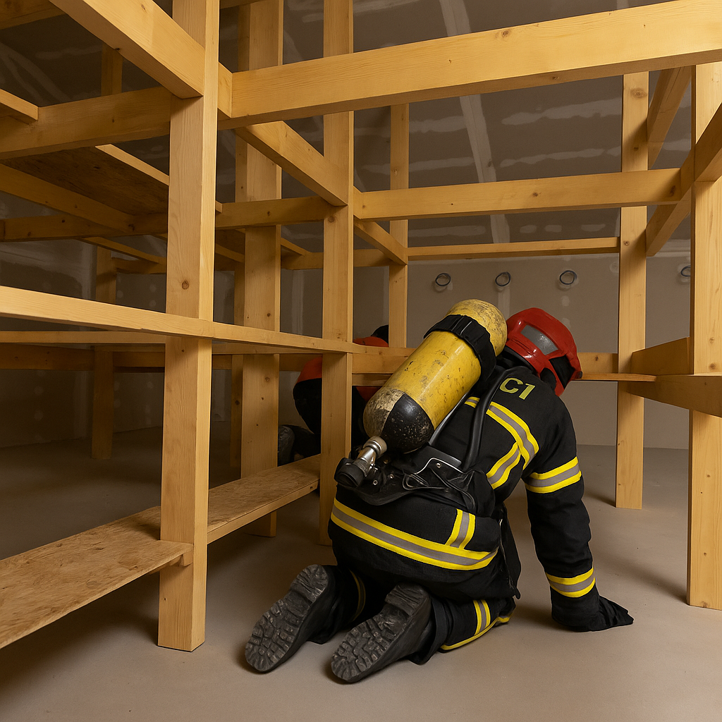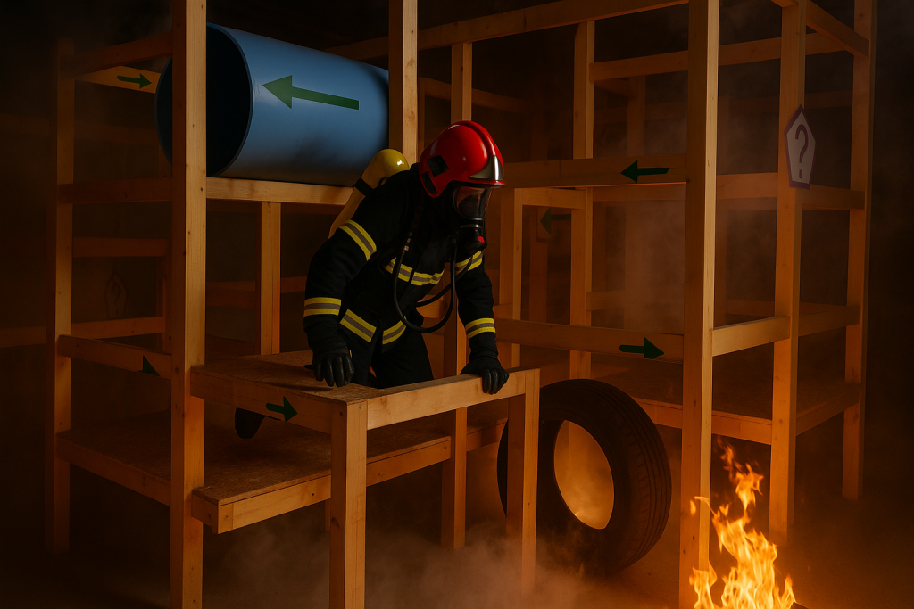 Gasilski labirint je posebej zasnovan poligon, kjer vas čakajo presenečenja na vsakem koraku. Prostor napolni virtualni ali resnični dim, slišijo se ognjeni prasket in alarmi, lahko občutite tudi toploto ognja – vse to ustvarjajo posebni efekti, ki poskrbijo za popolnoma pristno vzdušje. Vaša naloga je najti pot iz zadimljenega labirinta, pri tem pa reševati preproste naloge in premagovati ovire, s katerimi se gasilci srečujejo na terenu. Labirint omogoča prilagodljivo težavnost, zato je primeren tako za radovedne otroke kot za odrasle, željne izziva – celo izkušeni gasilci ga lahko uporabijo za vajo svojih veščin. Vsak obiskovalec torej doživi personalizirano izkušnjo, prilagojeno svojemu znanju in pogumu. Adrenalin je zagotovljen, obenem pa ste ves čas varni pod budnim očesom usposobljenih mentorjev.